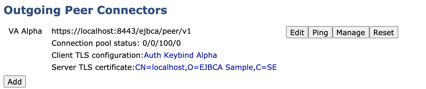 - On the CA instance, an Outgoing Peer Connection to the VA instance.