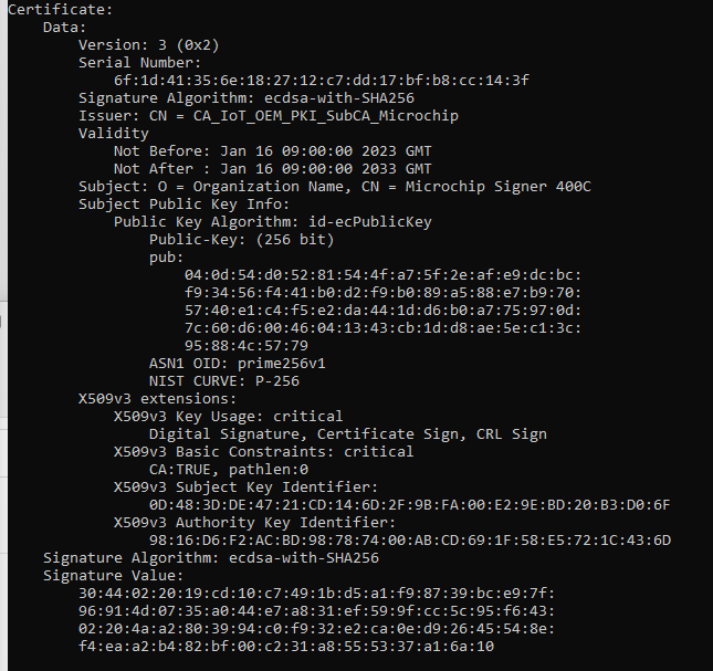 Notes on the Custom Signer Certificate from the Microchip Technology application note documenting the compressed certificate format Compressed Certificate Definition:
