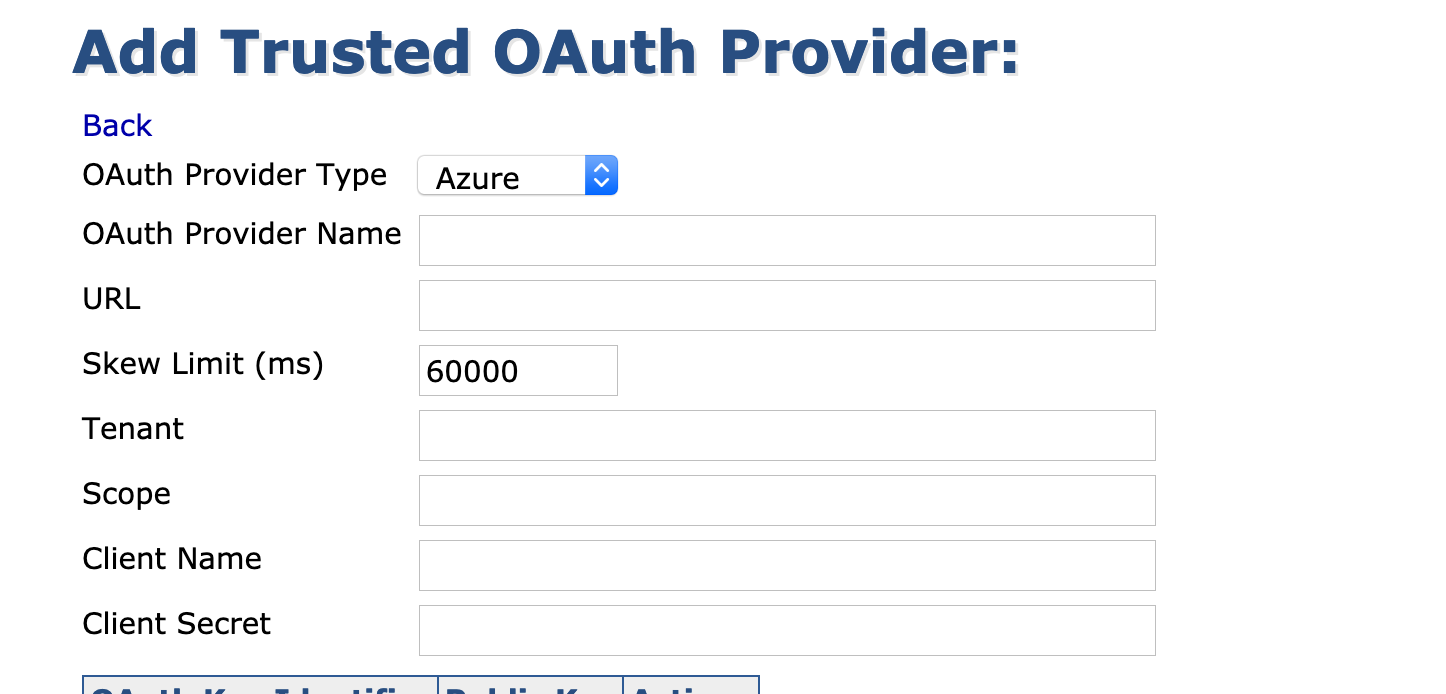 - Select the OAuth Provider Type=Azure.