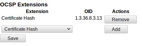 To enable the CertHash extension, configure the options in the OcspKeyBinding of the OCSP Responder: