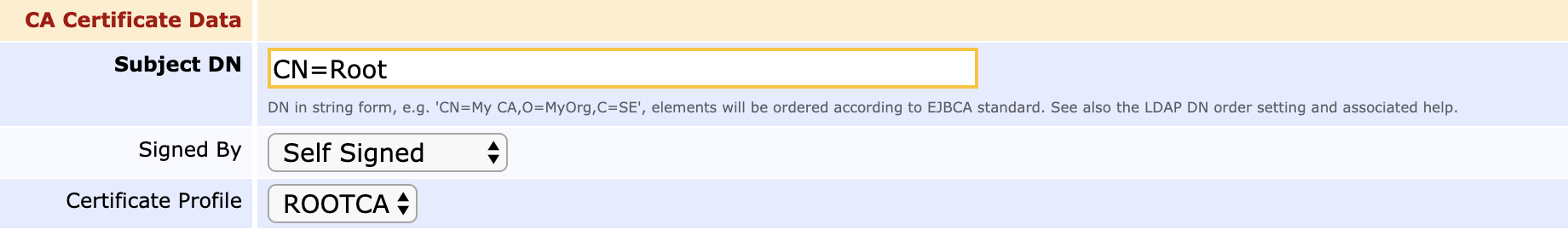 To create the root CA in the EJBCA CA UI, do the following:
