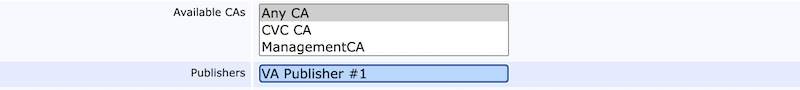 Once created, a Publisher is active when it has been selected in a CA or a Certificate Profile.