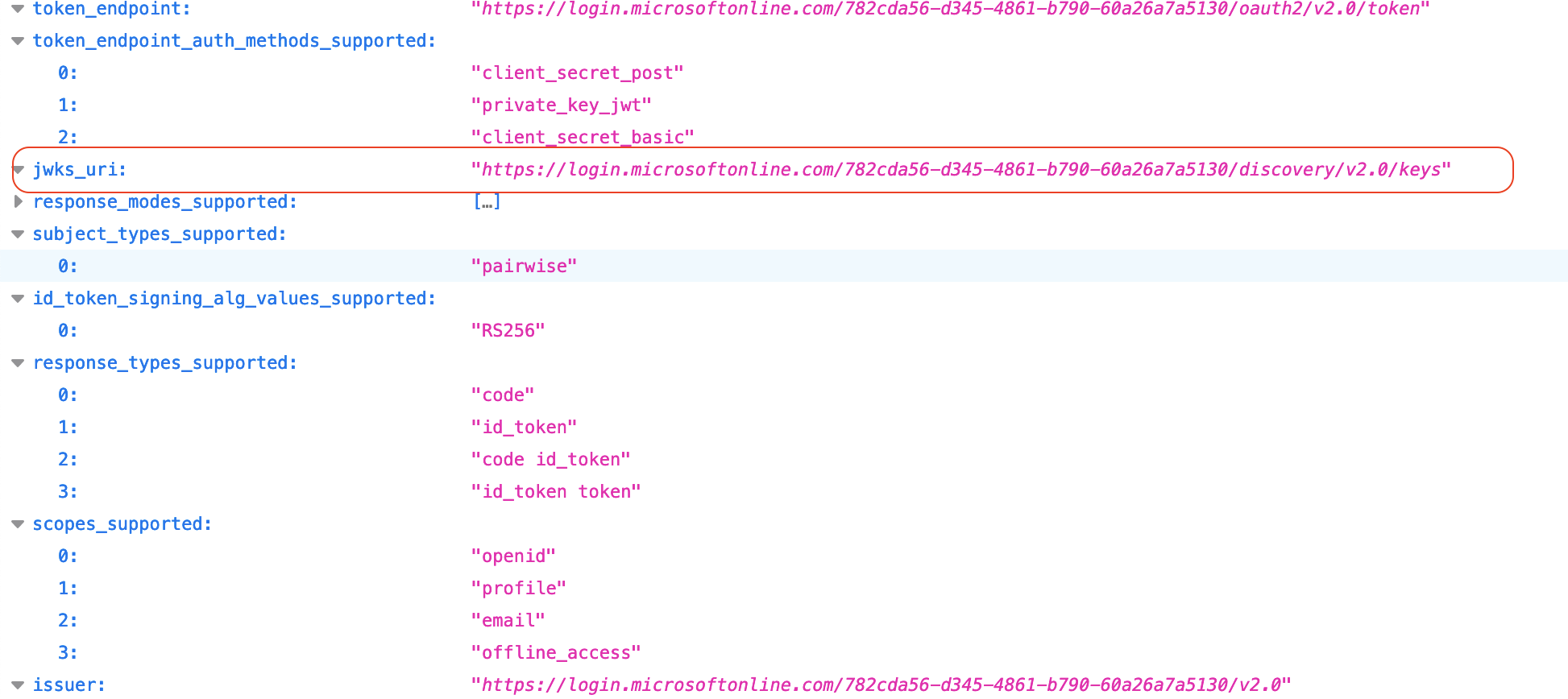 - Open the URL denoted by jwk_uris.