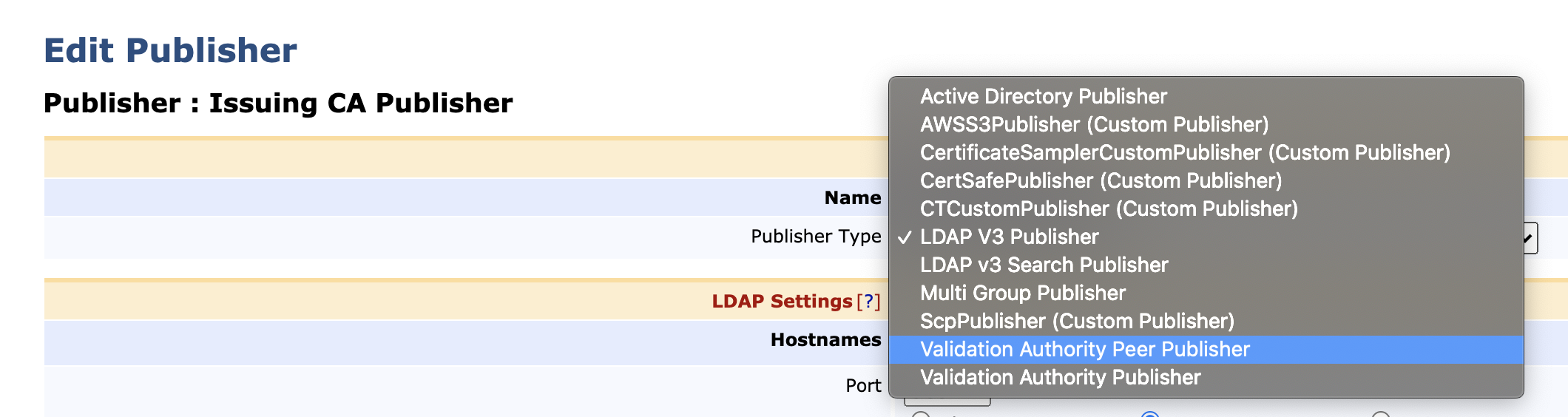 - On the Edit Publisher page Publisher Type field, select Validation Authority Peer Publisher.