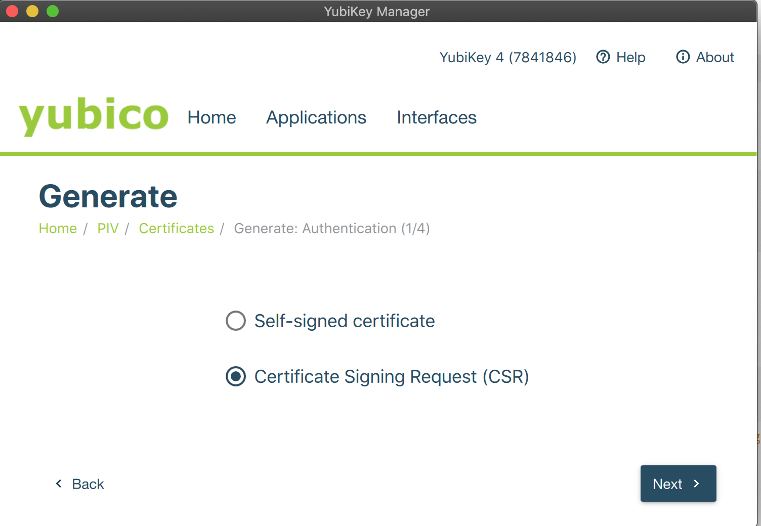 - Open the YubiKey Manager, select Applications > PIV and click Configure Certificates.