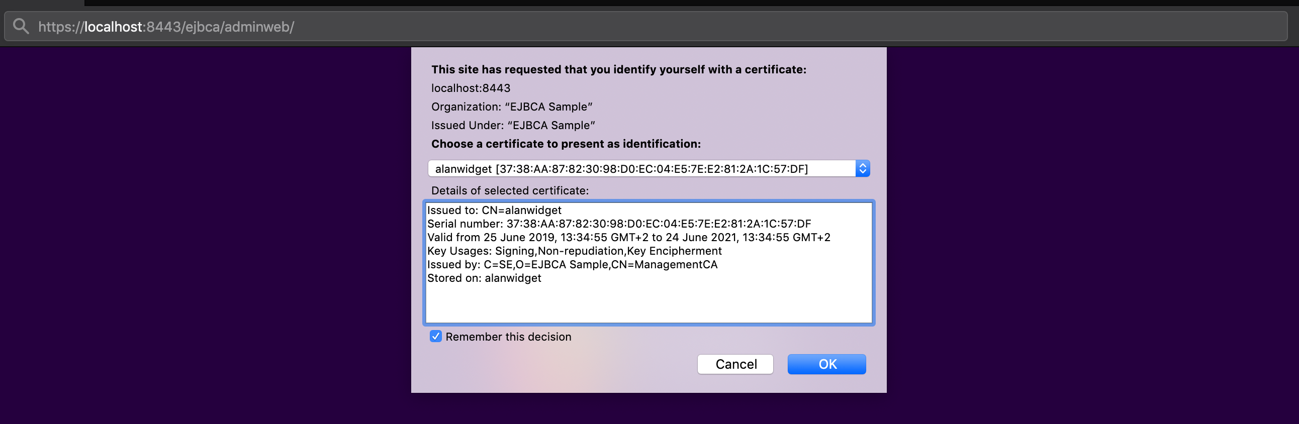 Follow the steps below to get started using your YubiKey with EJBCA. The instructions use Firefox and YubiKey Manager on macOS.