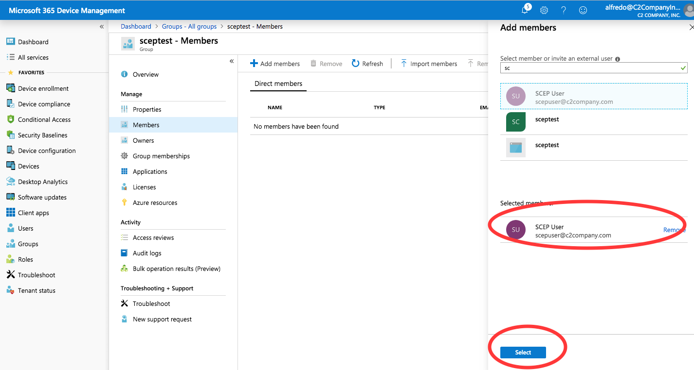 Select the SCEP User and then click Select to add the member.