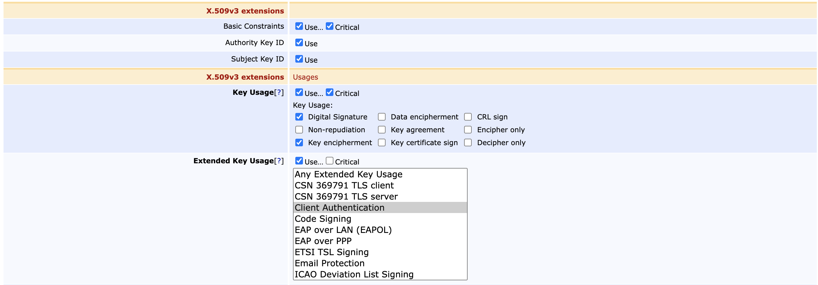 Ensure that the following relevant fields are set in the Certificate Profile (EJBCA CA Functions > Certificate Profiles):