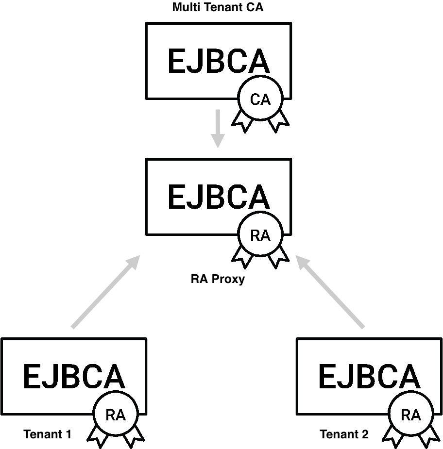 It is possible to configure EJBCA with Reverse Peers to achieve RA chaining. This solution is useful in cases where multiple Tenant RAs send requests to an EJBCA Cloud CA, but the customer does not want to accept incoming connections to their PKI.