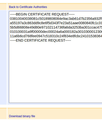 - Download the signed CSR by clicking Download binary file.