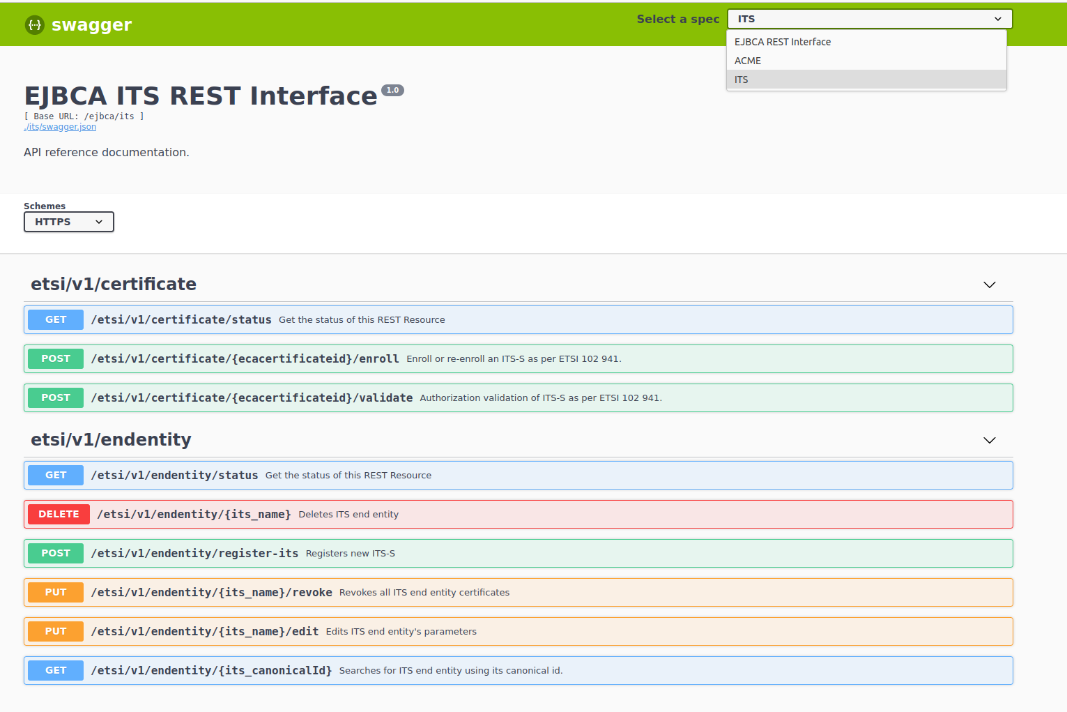 - In the Swagger EJBCA ITS REST Interface, select GET to search for the ITS endpoint: