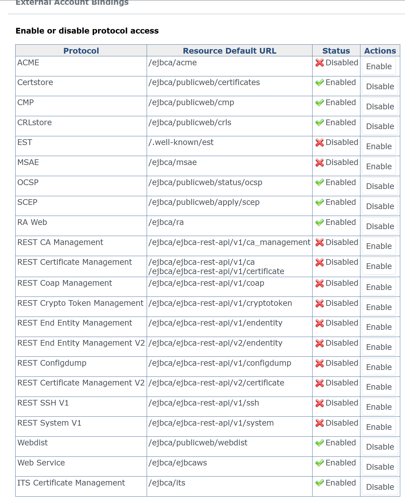 The following describes how to enable ITS Endpoints in EJBCA and access the EJBCA ITS REST Interface in Swagger in non-production mode. For more information on the EJBCA Certificate Management REST API, see EJBCA REST Interface.