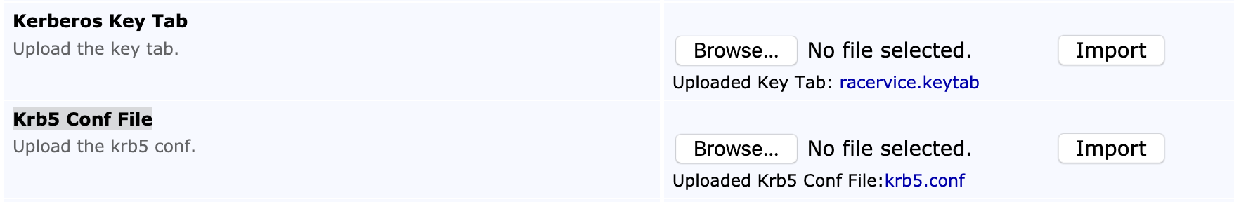 Krb5 Conf File | Import a valid krb5.conf file. |