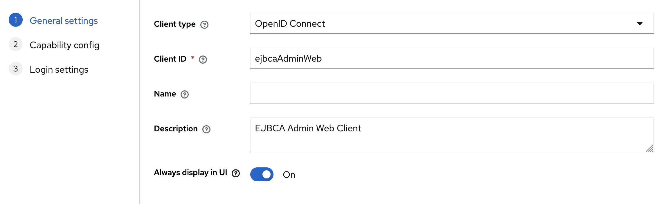 - Client ID: ejbcaAdminWeb