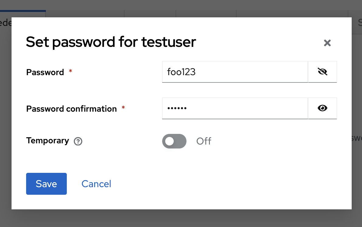 - To set an initial password for the user, click the Credentials tab and Set Password.