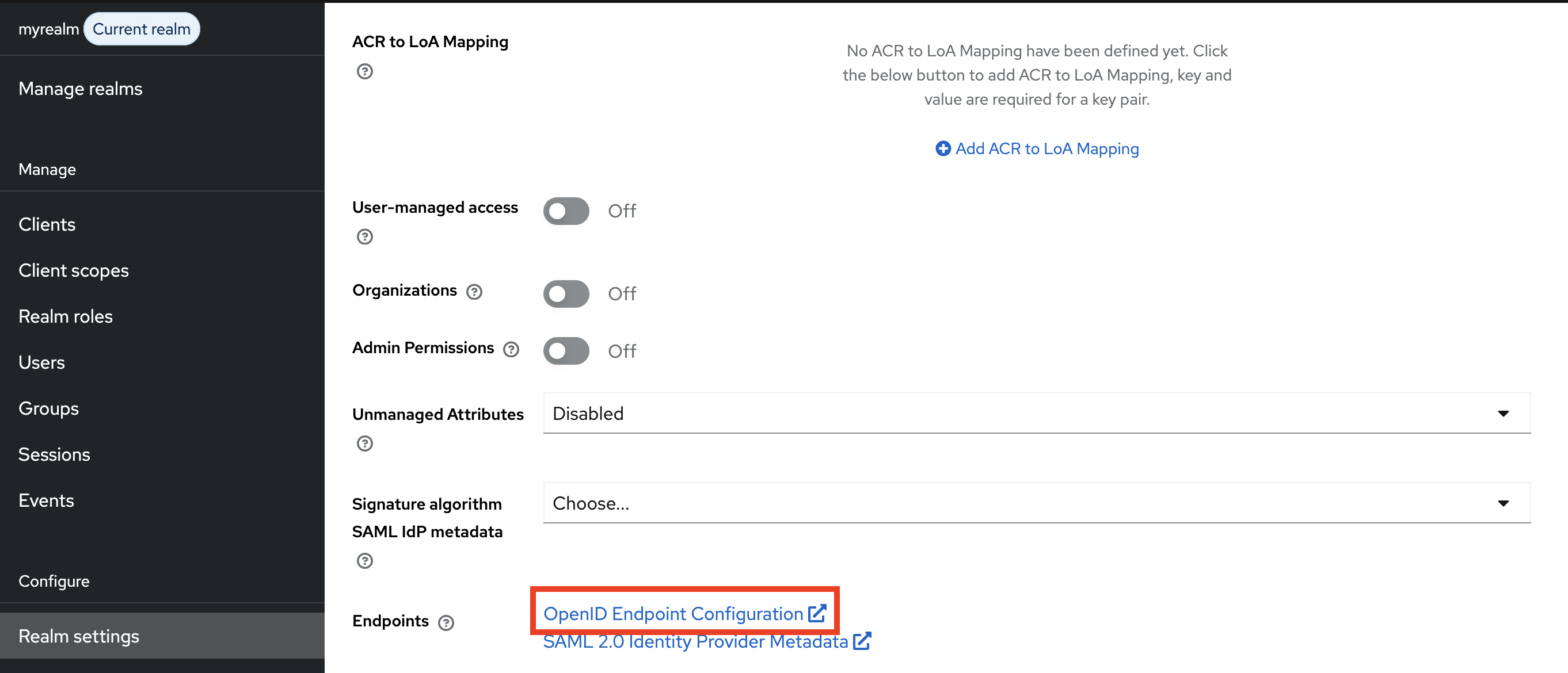 - Confirm that current realm is myrealm