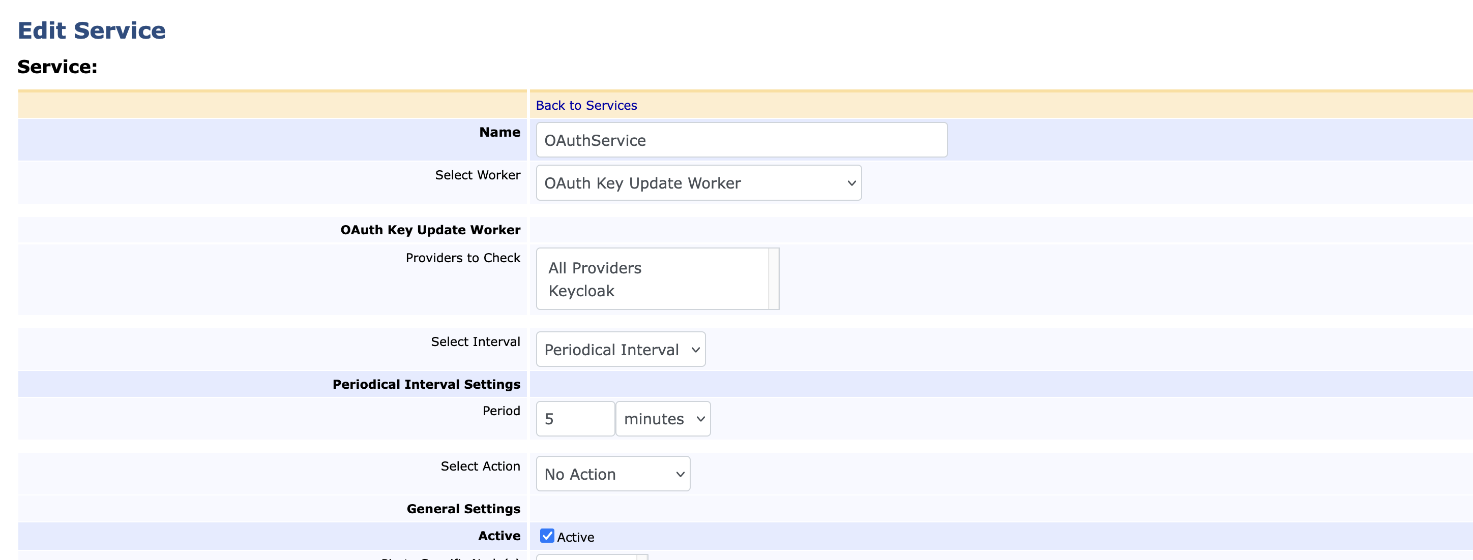 - Select OAuth Key Update Worker as service type.