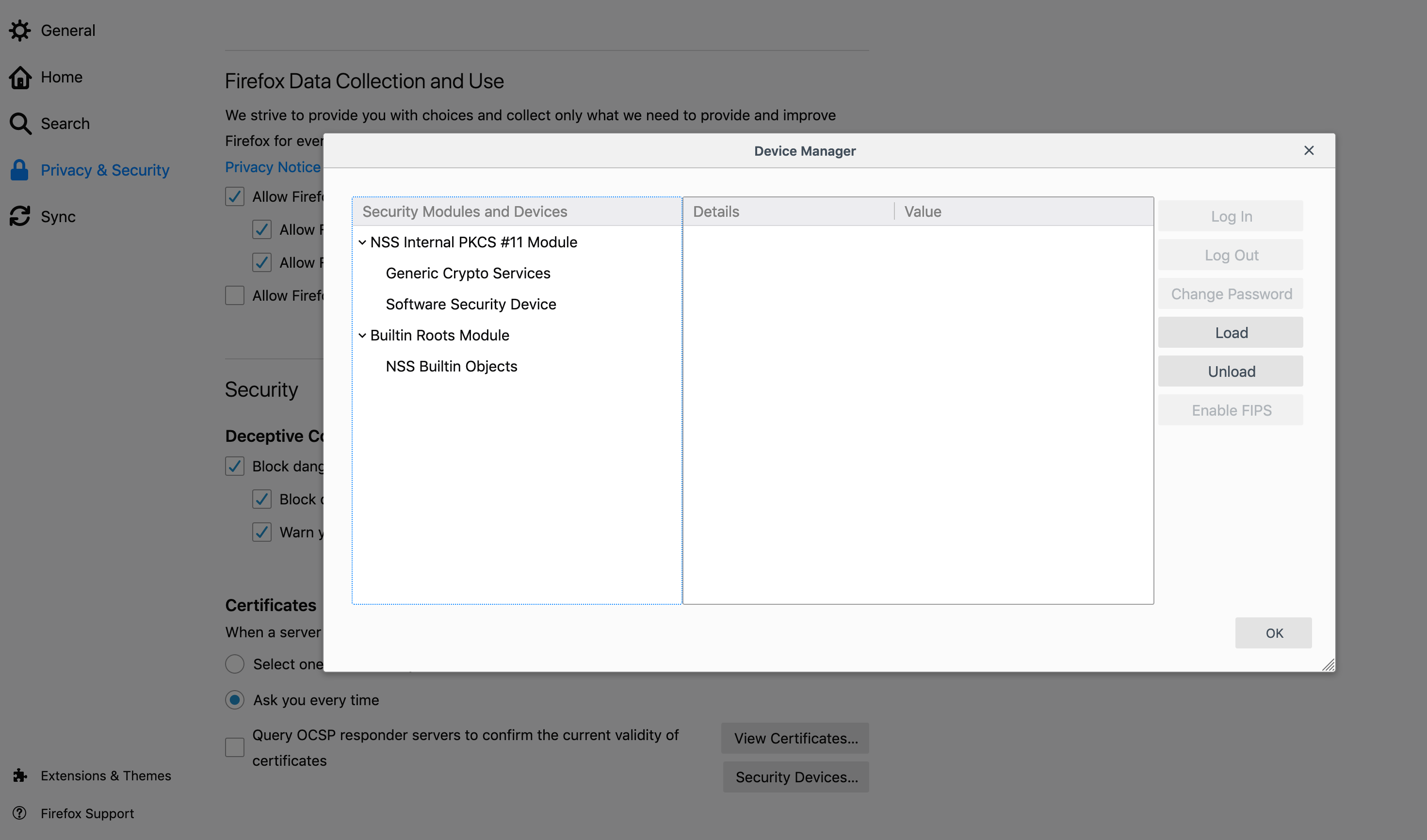 - Click Load to install OpenSC's PKCS#11 Driver.