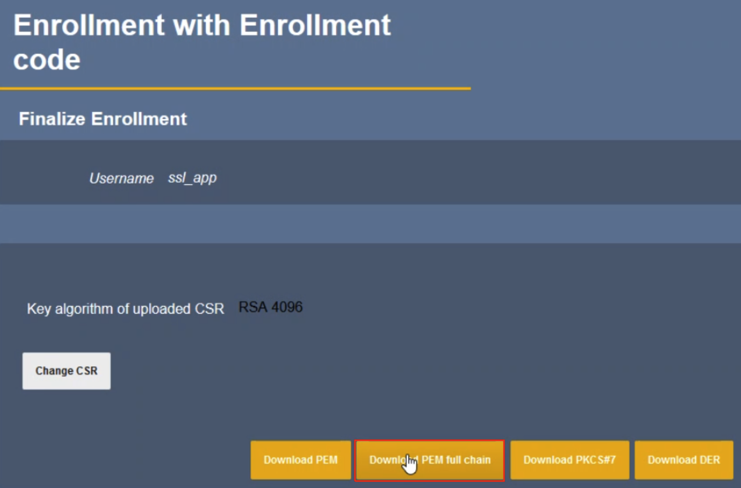- In the Search end entity with username field, enter ssl_app and click Search.