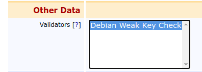 CODEtar -C /etc/weak-keys/all-lists -xf debian-weak-keys.tar.xzCreate a script which can be attached to a validator in EJBCA.