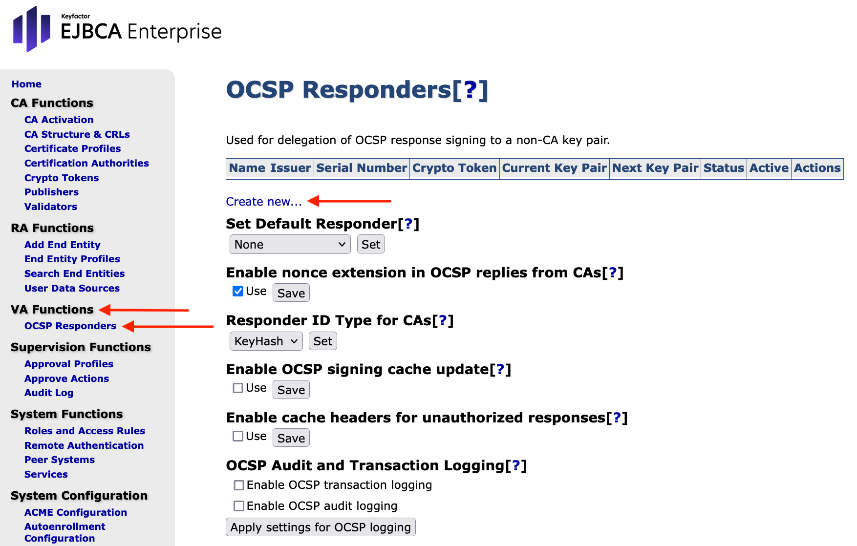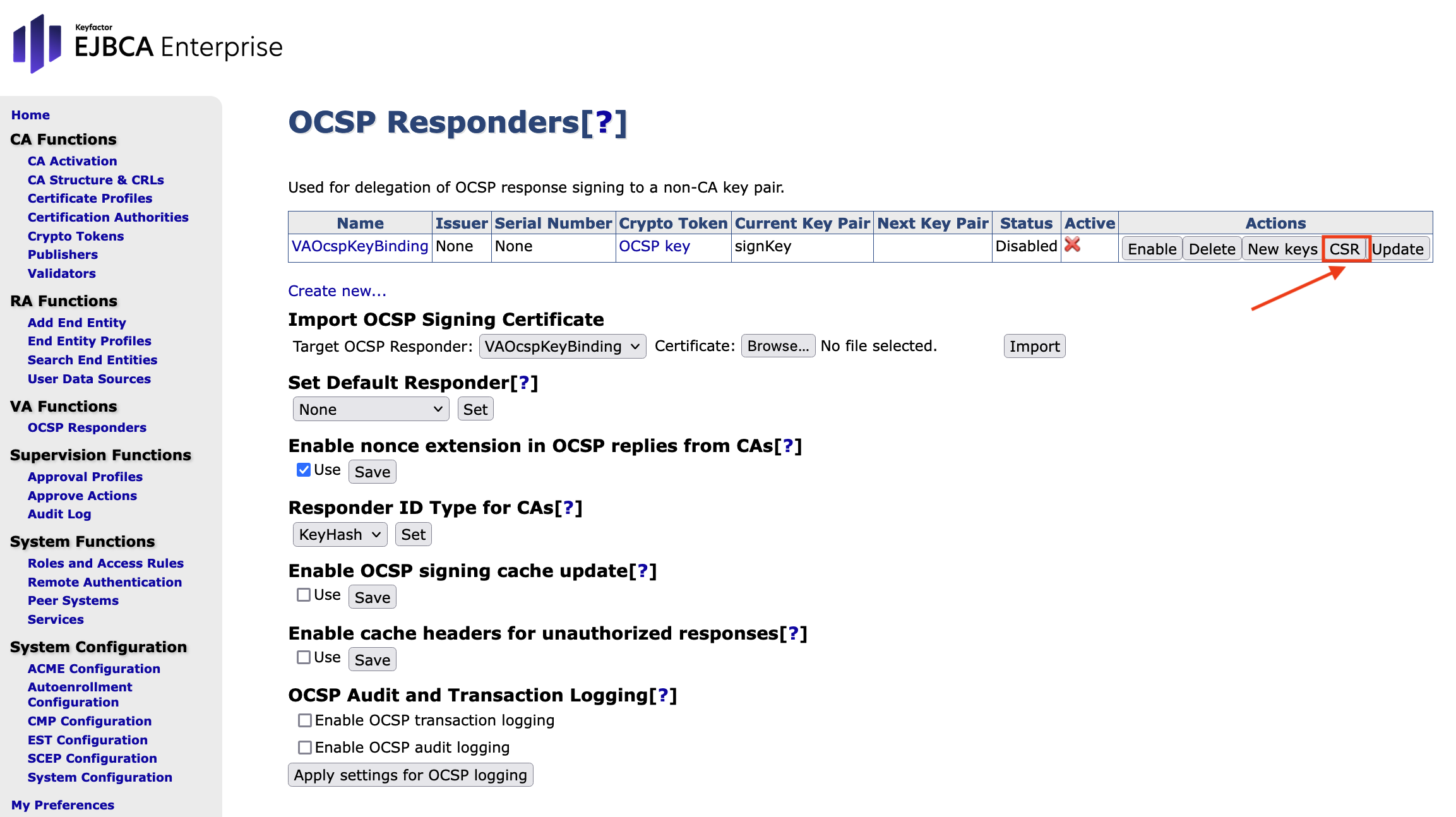 - In the VA Hardware Appliance, go to the EJBCA Enterprise Administration.
