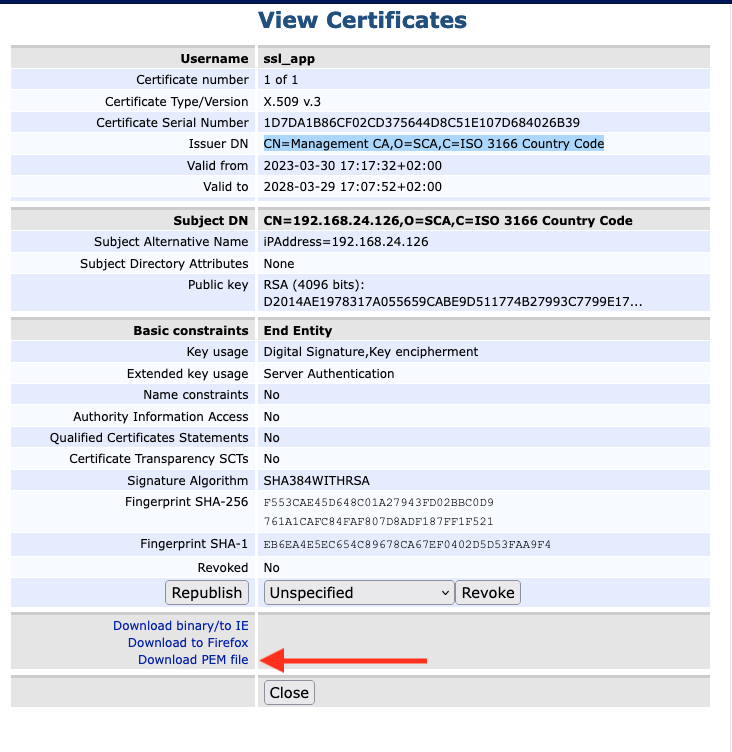 End Entity Certificate <certificate_to_be_controlled>.pemThe following is a command script that should be executed on a terminal.
