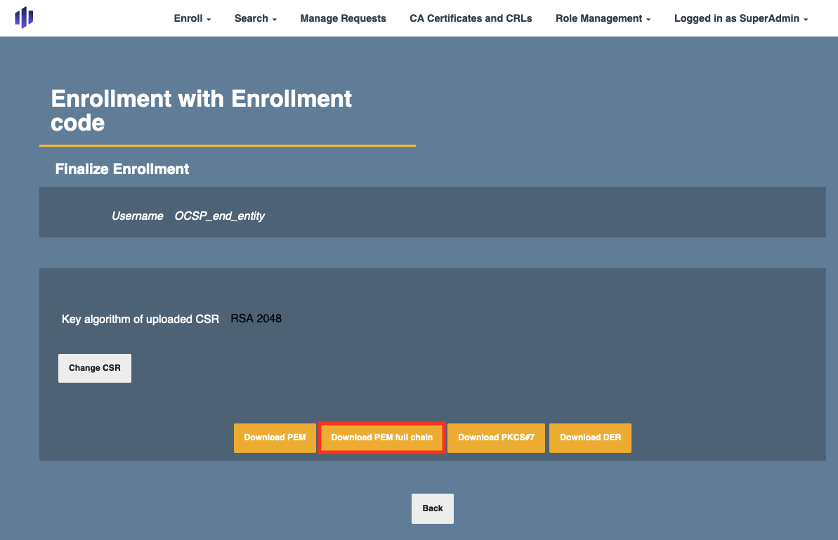 - In the Manage End Entity Profiles overview the message End Entity Profile 'OCSPEndEntityProfile' saved will be displayed.