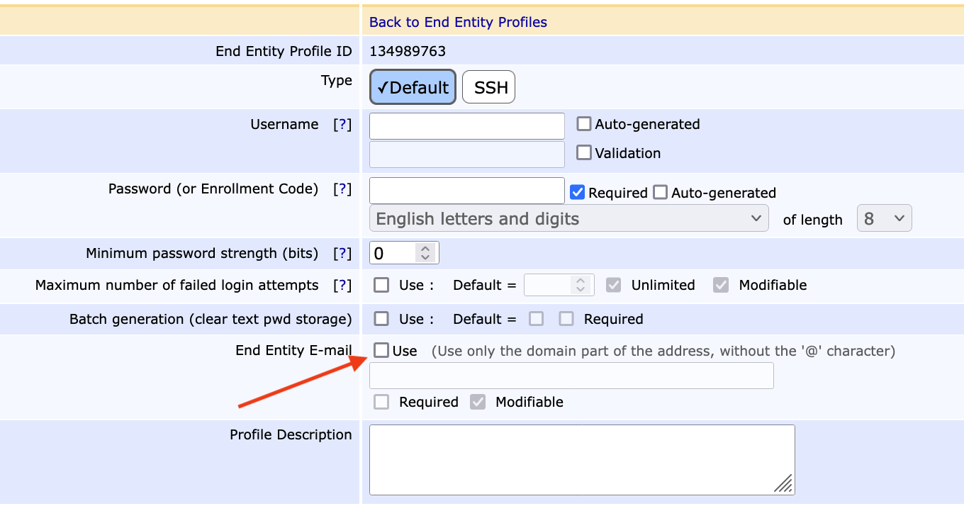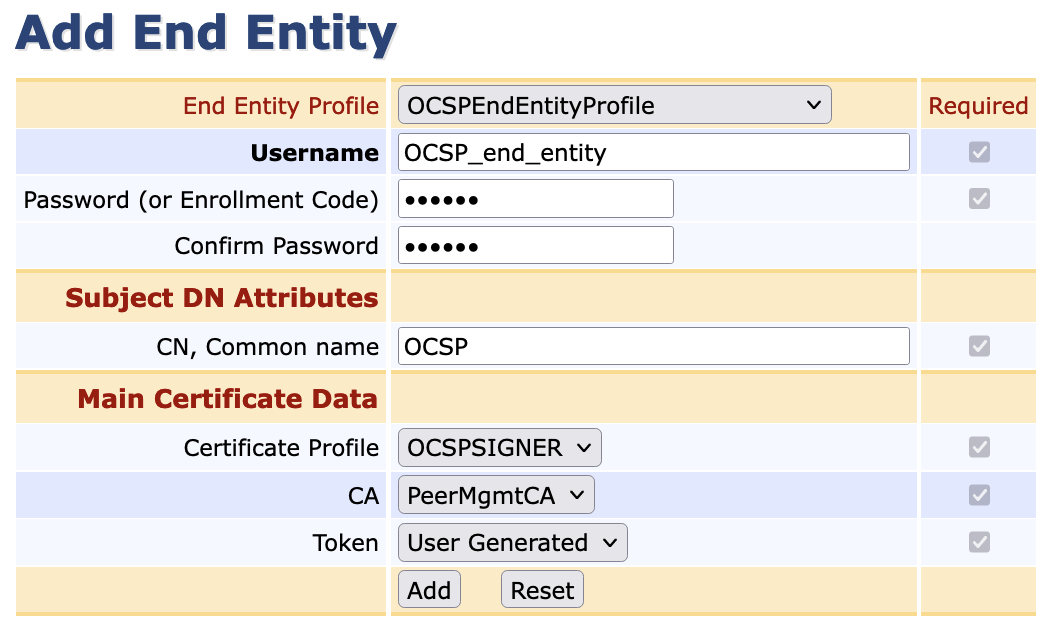 Edit End Entity Profile: OCSPEndEntityProfile as follows