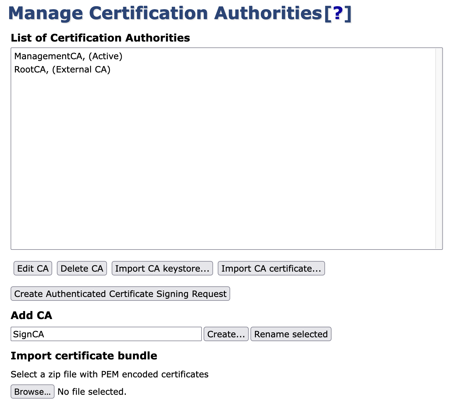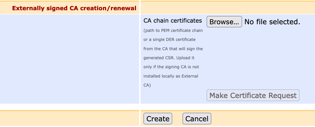 - Section 'Externally signed CA creation/renewal'