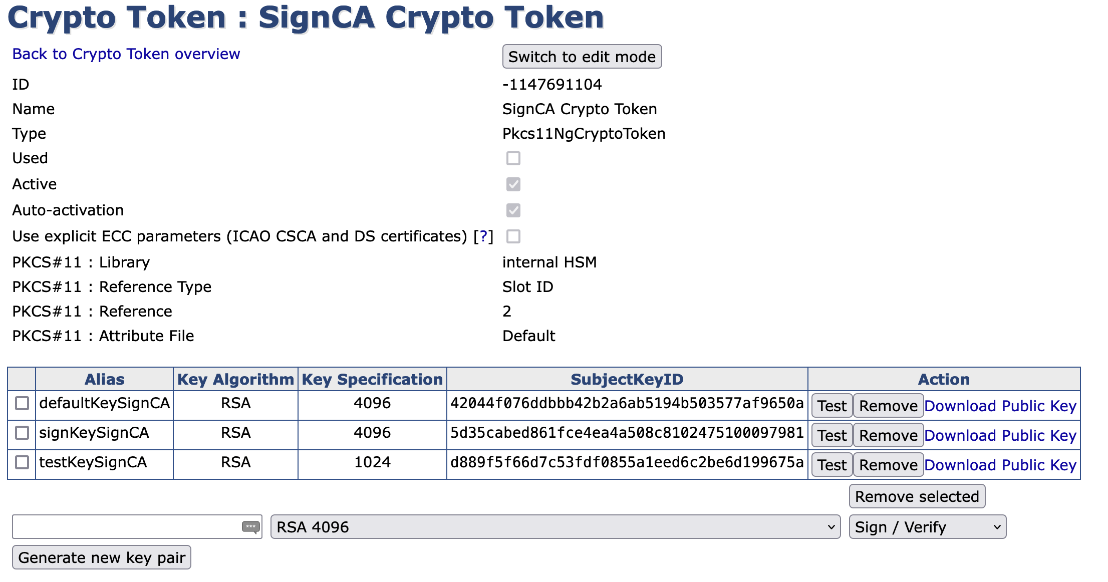 Follow these steps to create a Crypto Token and generate public keys to be used by SignCA.