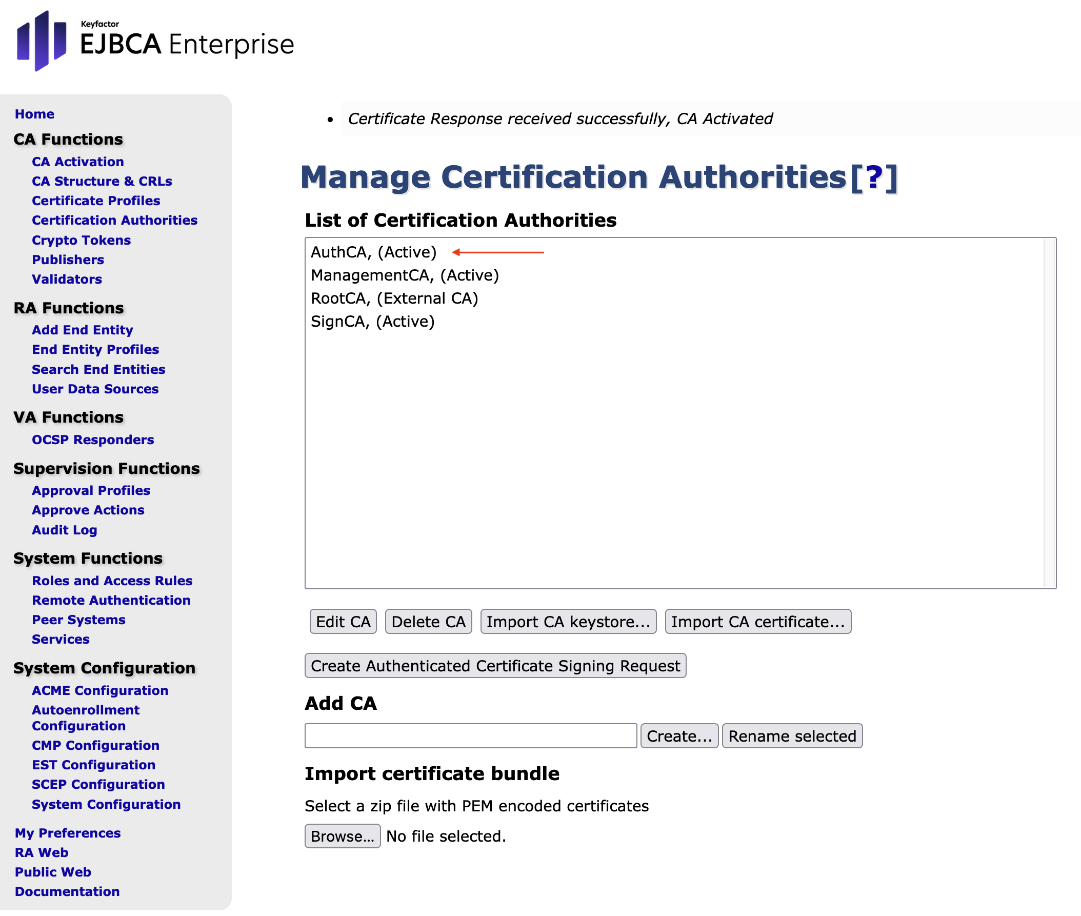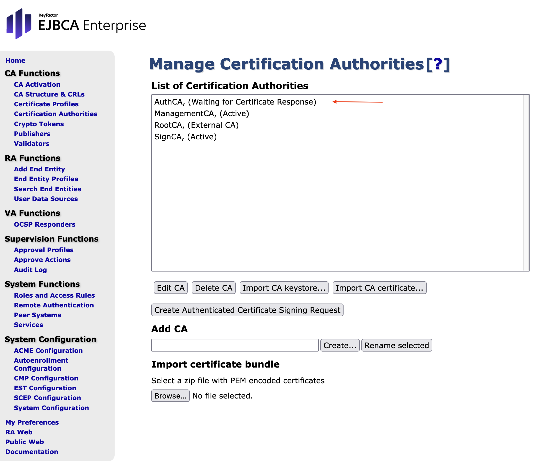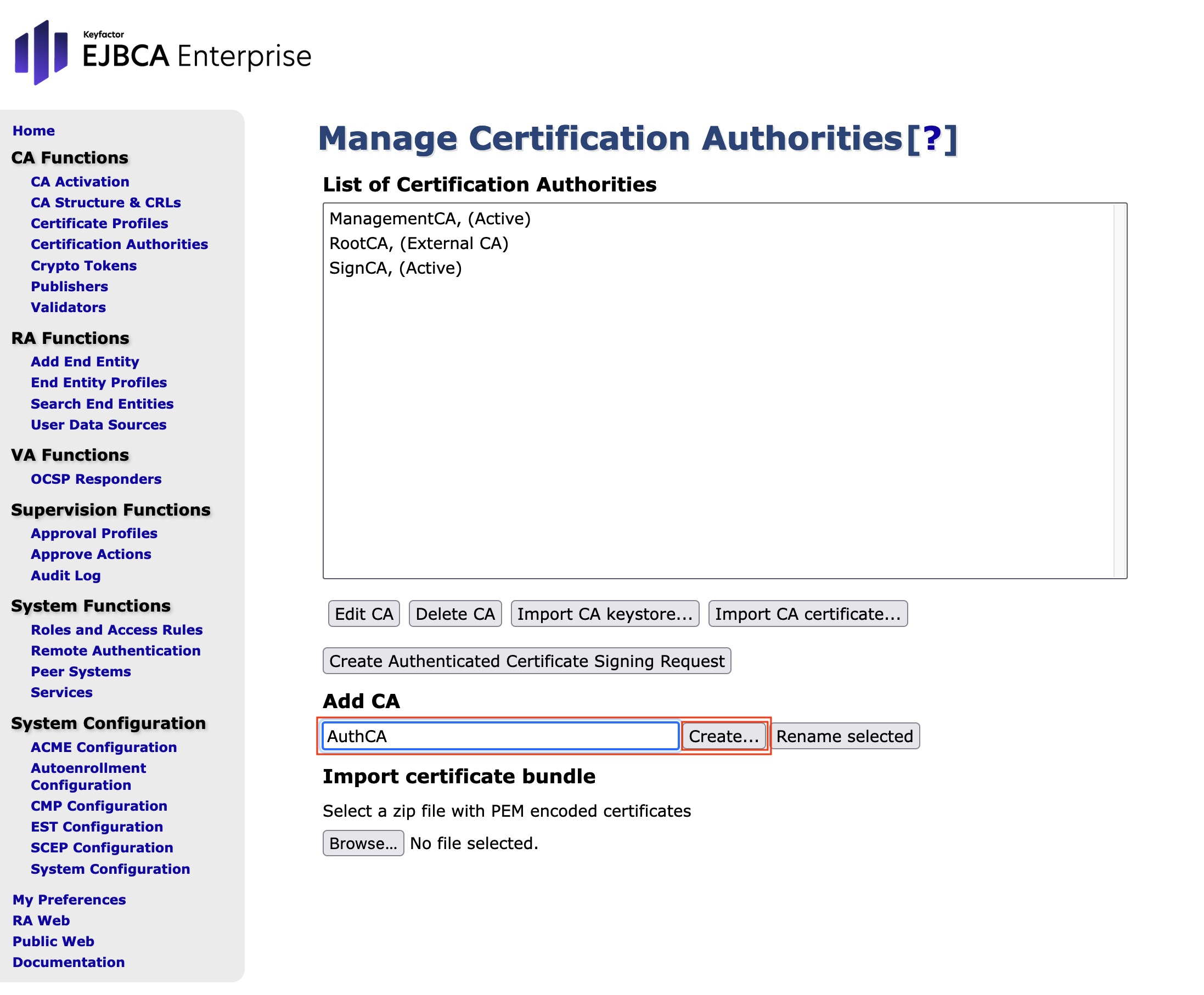 - Open EJBCA Enterprise.