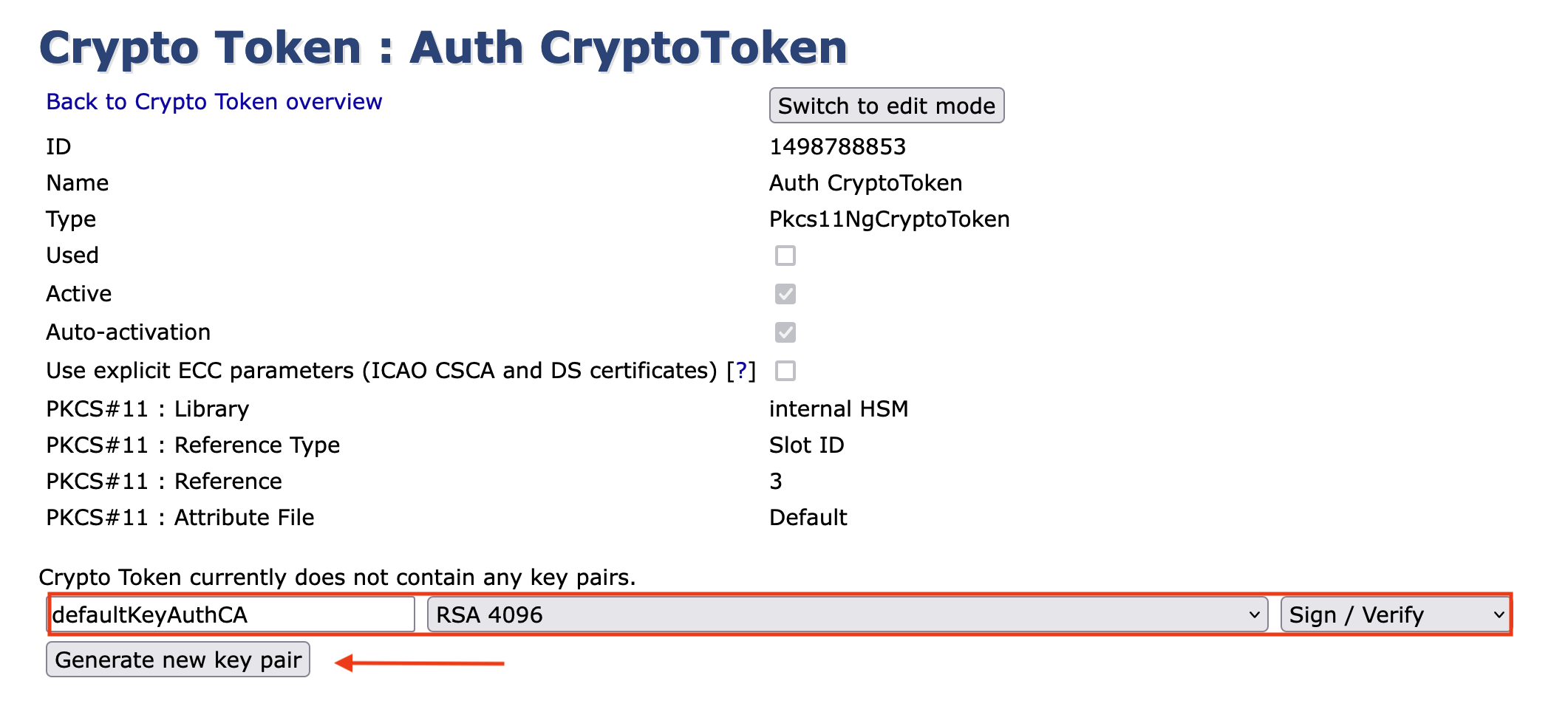 At this point, we will create a Crypto Token and generate public keys that will be used by AuthCA.
