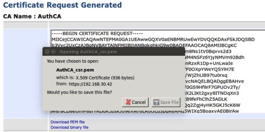 Username: enter AuthCA - Click Download PEM to continue.