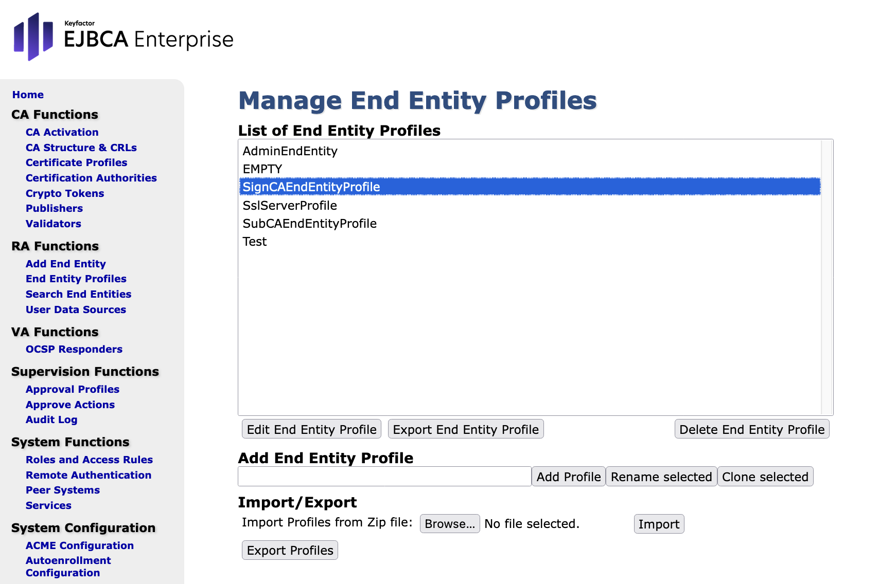 Select SSLCAEndEntityProfile from the list List of End Entity Profiles and click Edit End Entity Profile:
