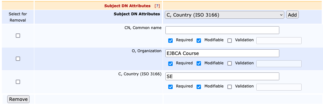 Enter the appropriate value. - CN, Common name: Enable Modifiable