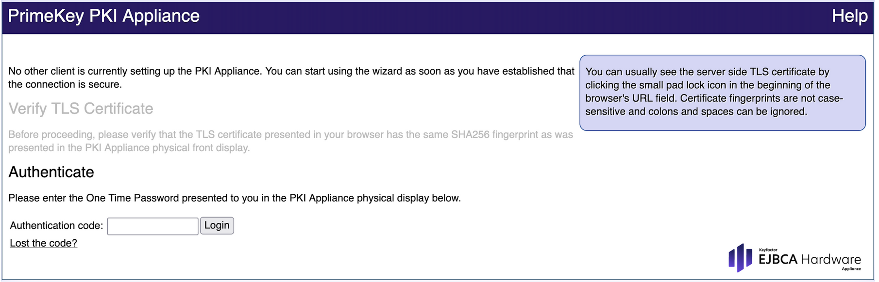 For managing the Hardware Appliance you need a client side SuperAdmin TLS certificate. This certificate is issued by the Management CA and can be used by your browser. The certificate will be your only authentication to the system, unless you configure other access methods. For information on configuration of further users and other authentication methods, see the section Access.
