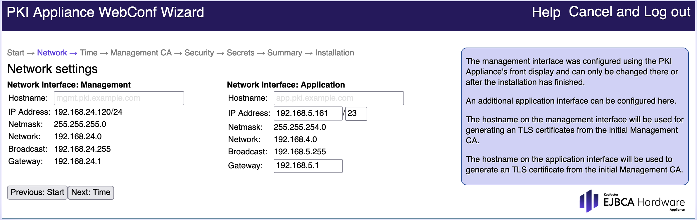 - Enter the Hostname for the Management and Application Interfaces.