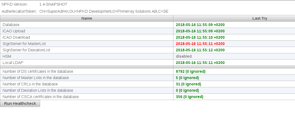 - The number of CSCA certificates, DS certificates, CRLs, Master Lists and Deviation Lists currently in the database