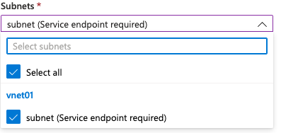 Click Select All under Subnets. Click Enable and wait for Azure to enable the service endpoint.