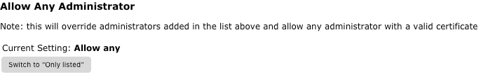 On the SignServer Administrators tab, change the Current Setting: Allow any to Only Listed by clicking Switch to "Only Listed".