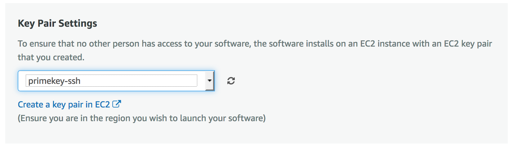 Specify the name of the key pair you plan to use to access the command line of the SignServer instance. When you later connect to the instance, you must specify the private key that corresponds to the key pair you specify now when launching the instance. For information on creating a key pair using Amazon EC2, refer to AWS Documentation on Amazon EC2 Key Pairs.