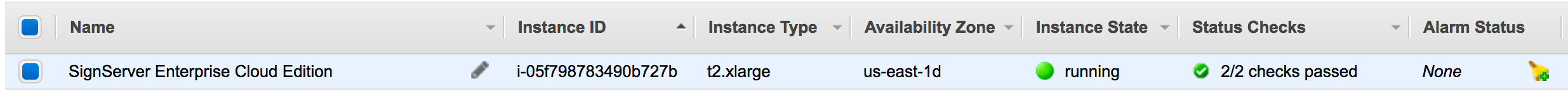 It may take several minutes for your instance to launch. After the Instance State changes from pending to running, the SignServer Cloud instance is started.