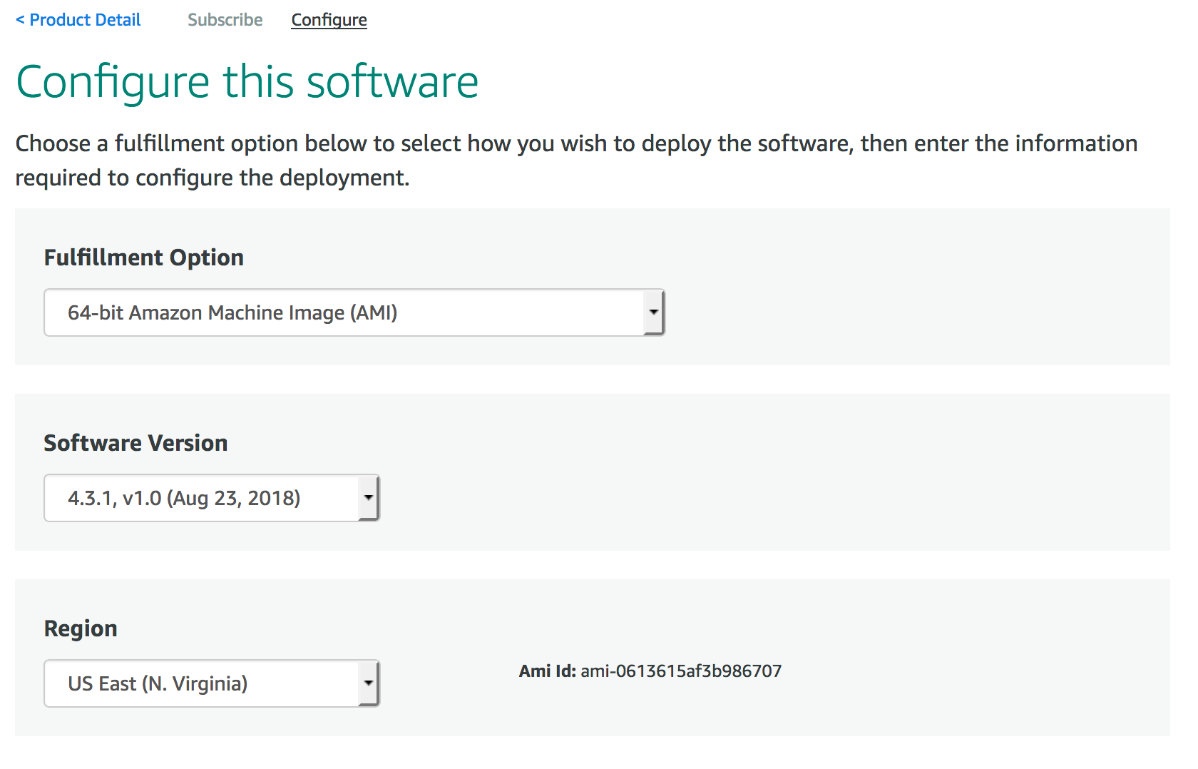 Select the options desired for Software Version and Region. The defaults should be sufficient.