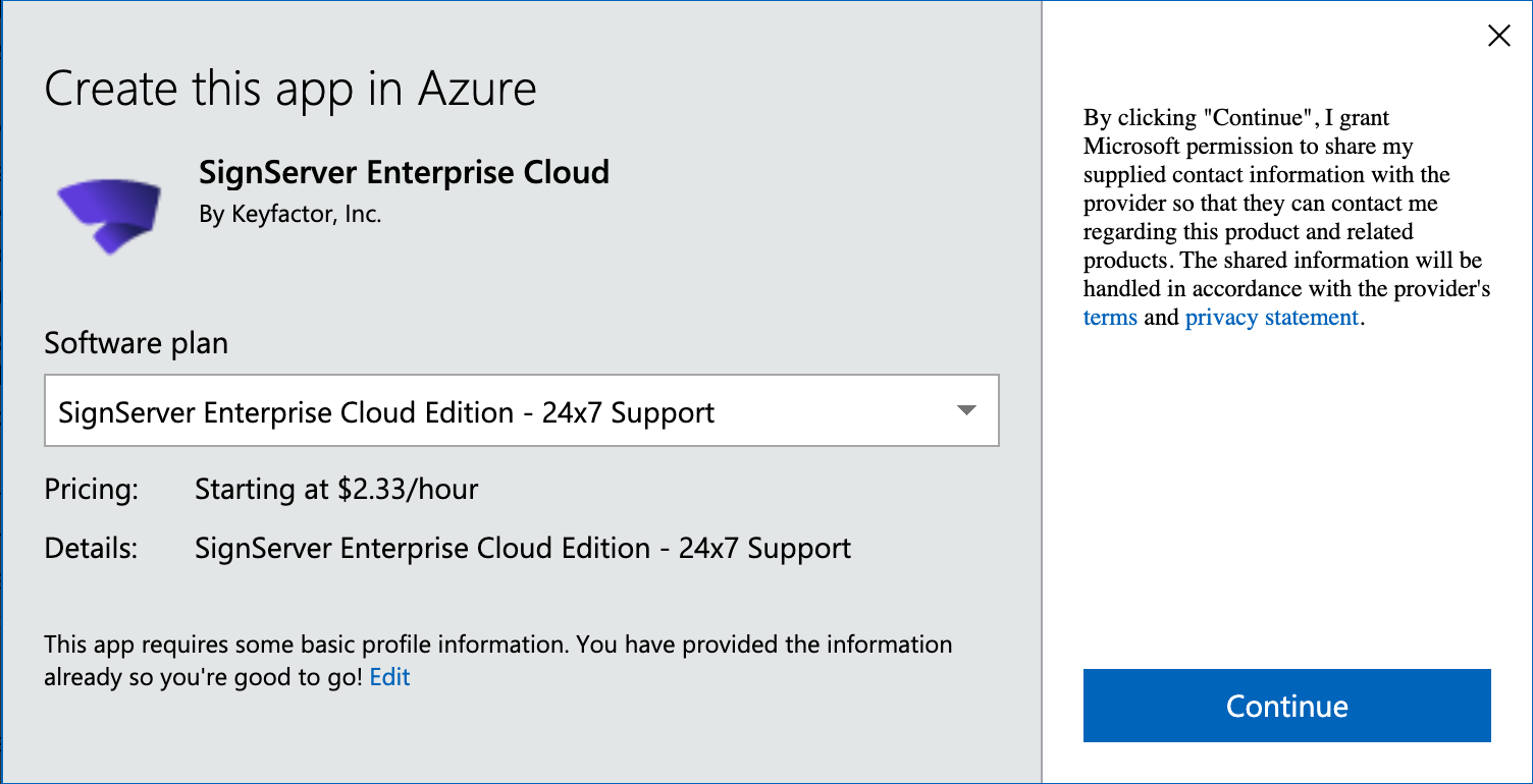 This brings you to the SignServer Cloud Launch Wizard for Azure.