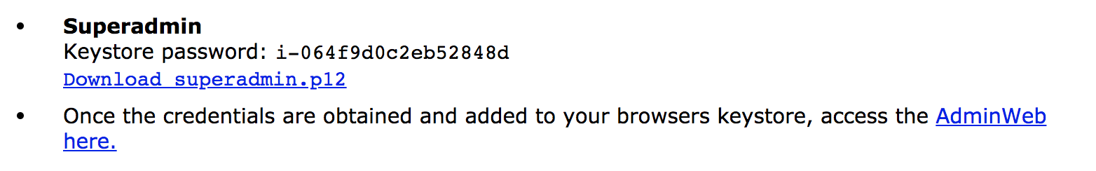 At the bottom of the Keystore retrieval page is the link to the superadmin.p12 file. Download this file and keep it safe.