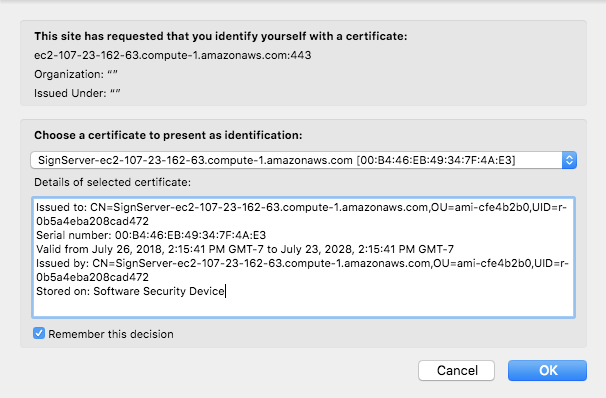 With the credentials installed, select the AdminWeb or access to SignServer Admin Web at the URL:https://<AWS Public DNS Name or AWS Public IP Address>/SignServer/adminweb.