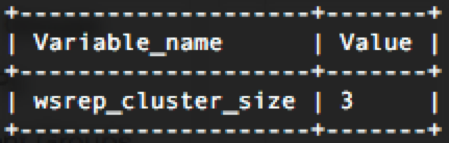 # mysql -u root --password=<PASSWORD> -e "show status like 'wsrep_cluster_size';"