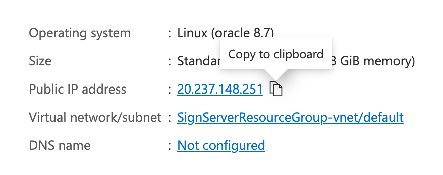 To obtain the public IP address of your deployed SignServer Cloud instance in Microsoft Azure, do the following: