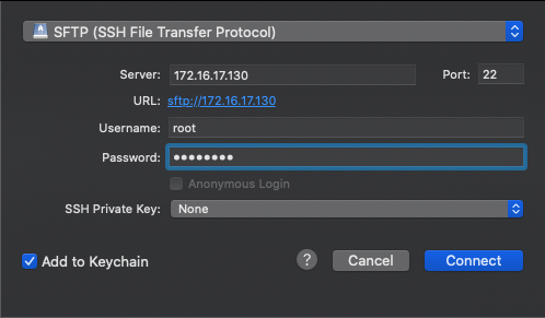 If using a Mac or Linux based computer, use the following command to copy the file to the host. If using AWS, ensure you specify the user as ec2-user with your SSH key and in Azure, specify the user provisioned with your instance.CODEscp ~/Downloads/signserver-ee-5.5.0.Final-bin.zip root@172.16.17.130:/opt/dist/Using a program such as WinSCP or CyberDuck: