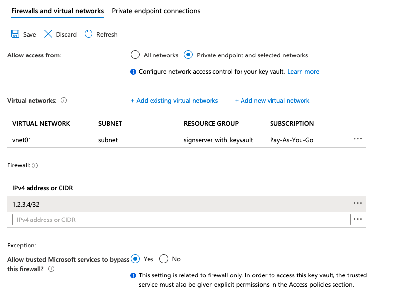To get around this, perform the following steps to configure Azure Key Vault firewalls to allow access to your key vault.